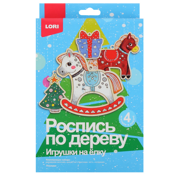 Набор для росписи по дереву Игрушки на ёлку Lori Лошадки Фнн-070